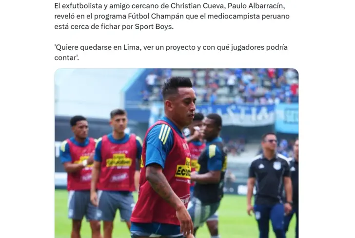 La decisión de Cueva de inclinarse por Sport Boys u otro club en Lima se debe a que está evaluando criterios más allá de lo económico. Albarracín indicó que Cueva quiere "ver un proyecto y con qué jugadores podría contar". Esto sugiere que el mediocampista prioriza un entorno de trabajo conocido, donde se sienta arropado por compañeros de confianza y un plan deportivo claro que le permita recuperar el ritmo de competencia con miras a la Selección Peruana.