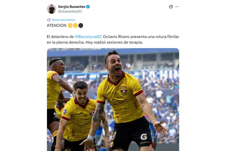 La preocupación se ha instalado en las filas de Barcelona Sporting Club y entre su hinchada debido a una nueva lesión de su delantero y referente ofensivo, Octavio Rivero. El atacante uruguayo, quien se ha consolidado como una pieza clave en el esquema del equipo, sufrió una dolencia física que ha encendido las alarmas sobre su disponibilidad para los próximos compromisos del club.