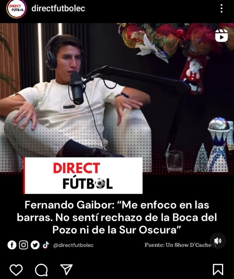 Es por este motivo, que Fernando Gaibor en una entrevista brindada en ‘Un Show D’Cache - T', habló sobre las barras de los dos grandes de Guayaquil, Barcelona SC y Emelec. Esto tras mencionar que desde las gradas del Capwell, un grupo de hinchas le lanzaron billetes con su cara impresa, en rechazo a su llegada al ídolo del Ecuador. Pero también mencionó que esto no le afectó, ya que lo toma con otro tipo de madurez.